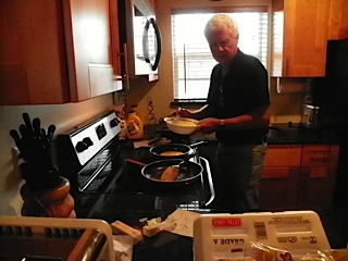 Rick Moss fixing breakfast before our July 22nd Fun Pistol Match.